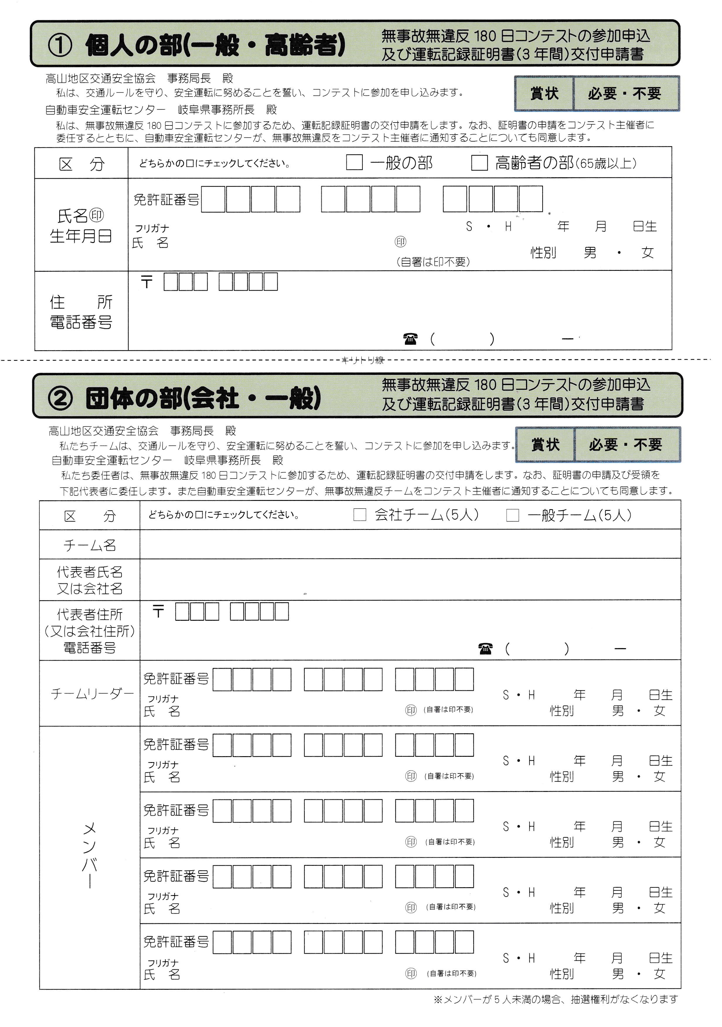 用紙は事務局にありますが、ご自分でプリントし、必要箇所を御記入いただいたものでも結構です。